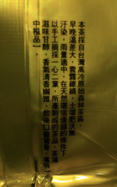 thank you so much, MuYun!MuYun wrote: The golden-yellow bag is most likely Cuì fēng oolong, Cuì fēng being the region from where the tea comes. The brown bag is black tea, Red Jade or Tai-tea#18.