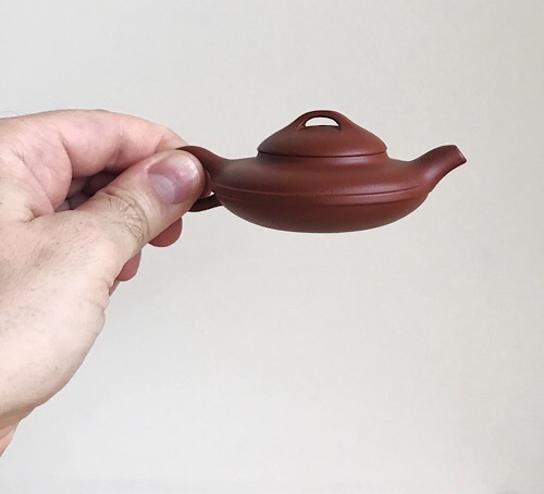 This pot has pretty good workmanship. The extremely flat shape and small volume makes it the perfect candidate for Yancha, or other unfurled leaf teas which are sensitive to heat. Excellent pour speed at six seconds.