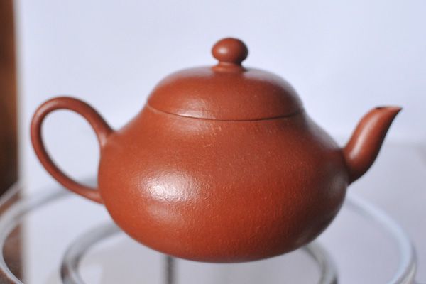 1) 90's Pear Skin Zhuni Qiu Shui, made in qing style. hand made, clear joint line near back of handle. good lid fit, high fired. formerly used with green rolled oolongs, volume 100ml. bought from ong fatt hong tea merchant singapore in '99 or so.