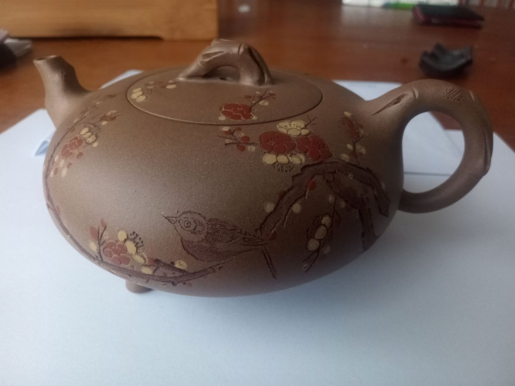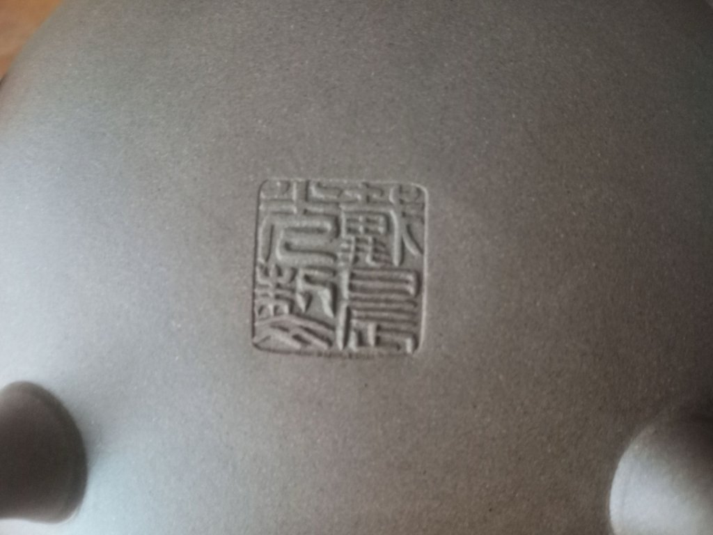 I got this white/buff colour yixing teapot with unusual decoration and lots of seals I can't read!