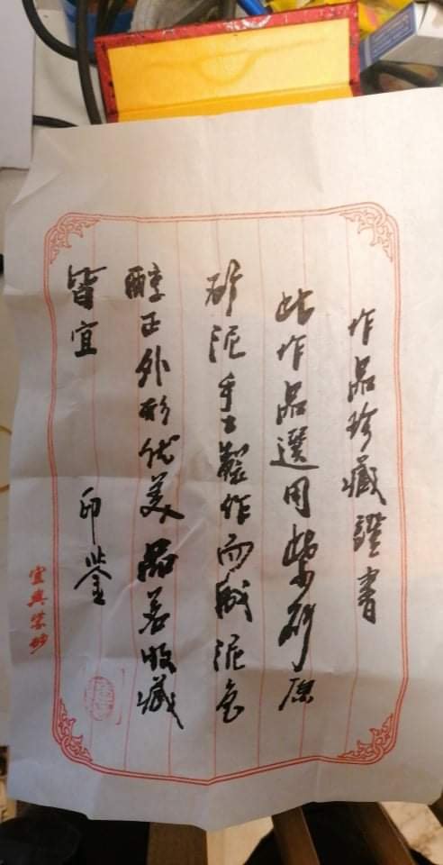 This is a written note by the artist with his stamp and can be regarded as a certificate of the maker. I'm can't read his style of writing though.
