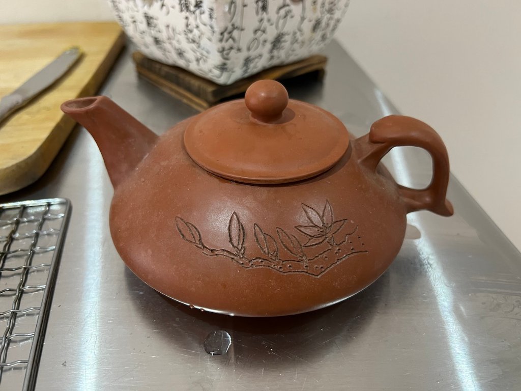 I picked up this Yixing Teapot at an antique show in New York City. The seller wasn't sure about the year. Do any of you experts know what year it might be? Or any other information? I'm not sure if the base and teapot originally came together, either, so that's no help. There are no marks or anything on the bottom. Thanks!
