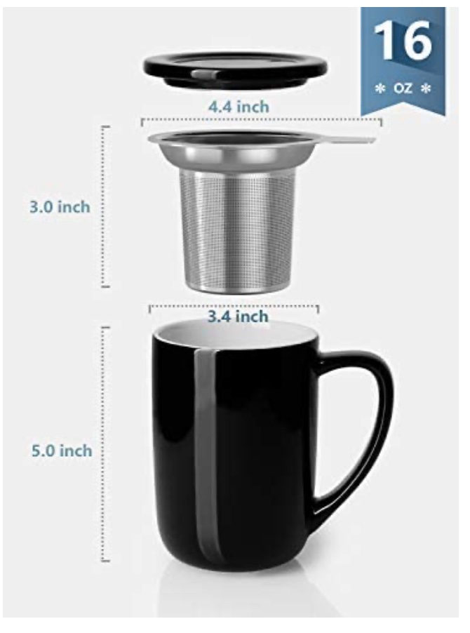 Sweese 203.112 Ceramic Tea Mug with Infuser and Lid, Single Cup Loose Tea Brewing System, Draw Your Own Design, 16 OZ, Black