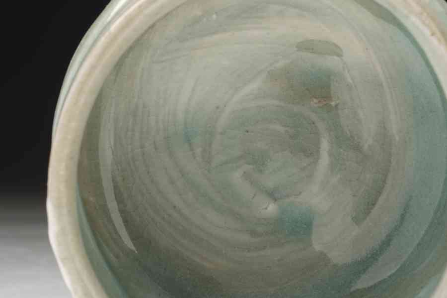 first, these vessels are thrown as a closed form, then a hole is made and the top 'dome' of the closed form is pushed down to form the inner surface for tea.