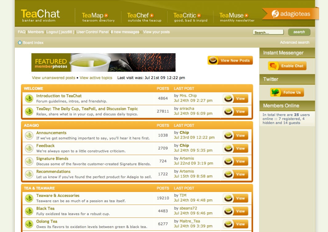 Perhaps many people will hate me for this suggestion but I would consider a nice banner at the top. Either featured member photo or featured tea.