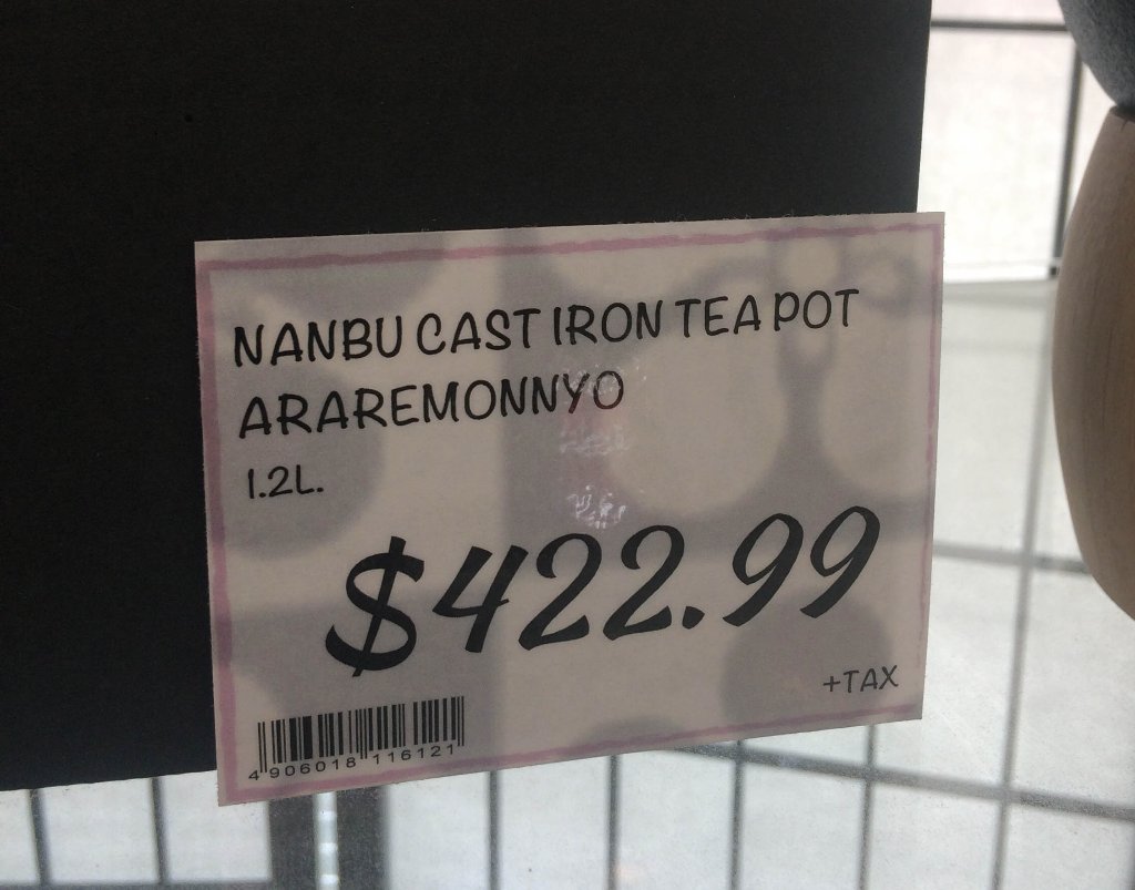 Wandering around the Japanese grocery after a doctors appointment I saw a nanbu tetsubin on holiday sale. "Yeah, right" I said, fully expecting to see enamel inside, but to my surprise, the inside was blueish, indicating reduced iron. The price was low so I snapped some pictures so I could look up more details later. Unfortunately I have not been able to glean anymore details by basic googleing so I am posting my horrible shots here in the hope that someone might have some advice or information. 250 for a tetsubin seems pretty low but like the X-files, I want to believe.