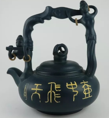 Teasenz wrote: This obviously an Yixing teapot. The clay type seems to be known as 'Lu Ni' (Green clay). Looking at the shape with a handle it's known as a 'Ti Liang Hu'.