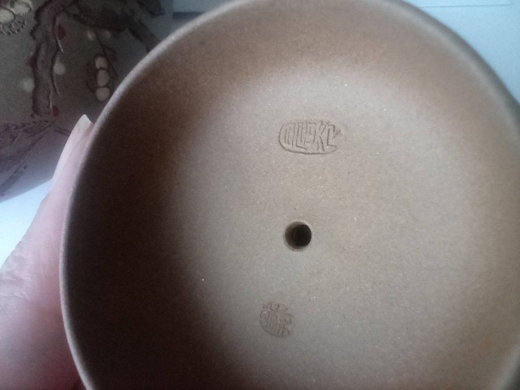 I got this white/buff colour yixing teapot with unusual decoration and lots of seals I can't read!